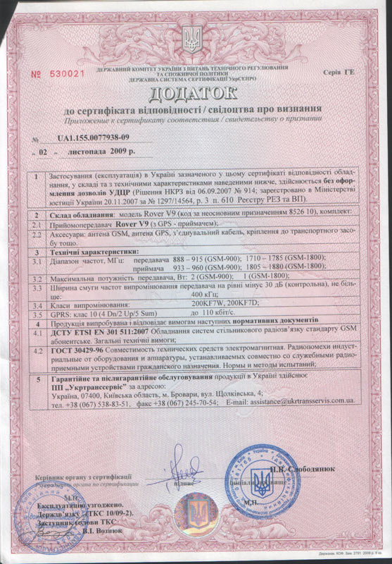 - Стану датчиків цілісності авто, вантажу, пасажирів і так далі